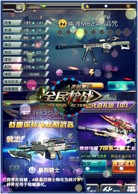 全民槍戰》新版本中加入了增強版槍械強化改裝玩法,收集槍械碎片合成特定槍械,騎士系列、生化系列等20余種槍械皆可合成,為你的軍火庫添磚加瓦,輕松應對不同的...火眼金睛找BUG,iPad mini...